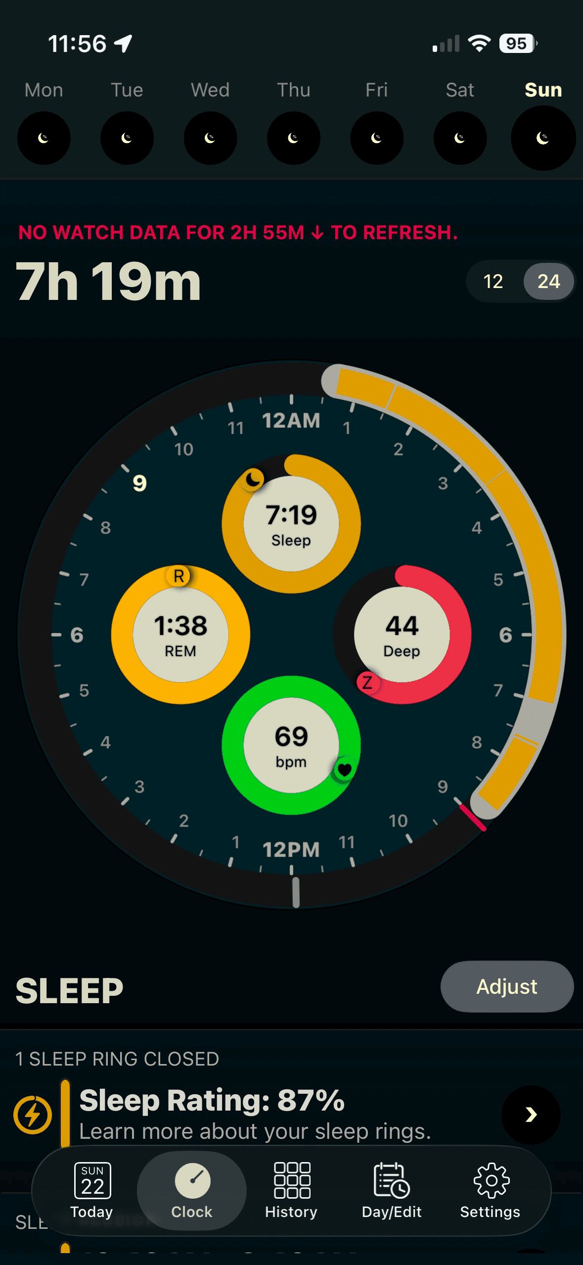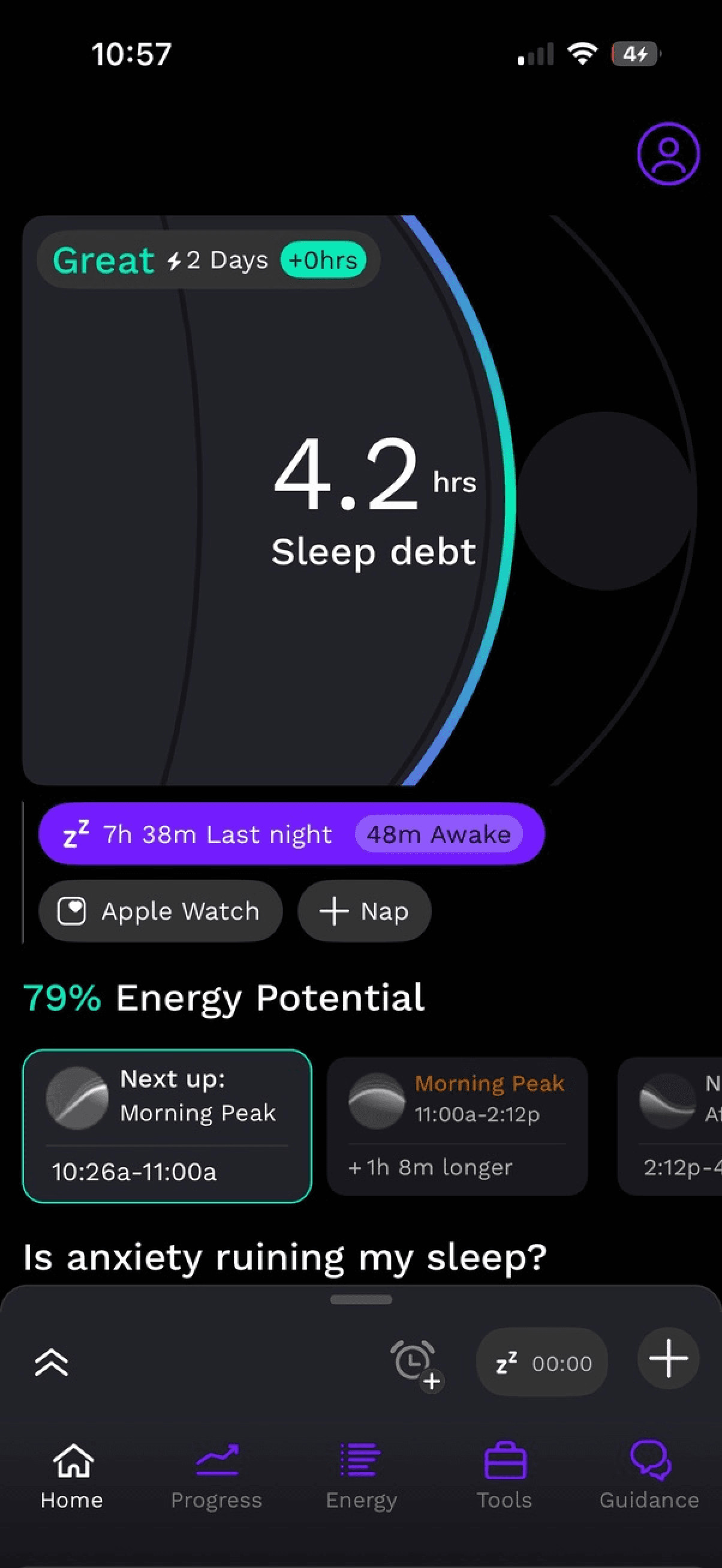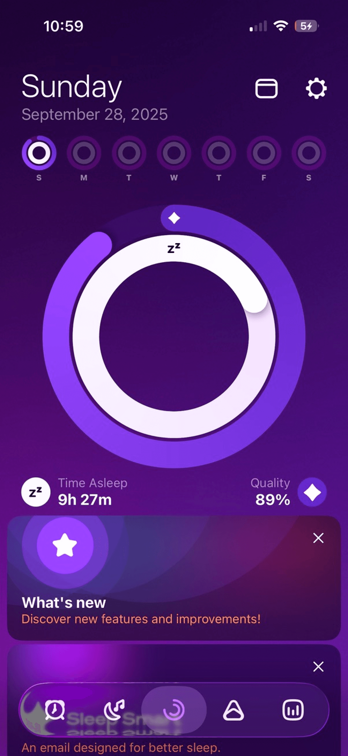 The most frequently recommended "one-time purchase" sleep tracker. Powerful under the hood, but the interface is notoriously dense and unintuitive. It offers a form of sleep debt tracking, but the logic is flawed — users can go into "sleep credit," which doesn't align with how sleep science actually works.